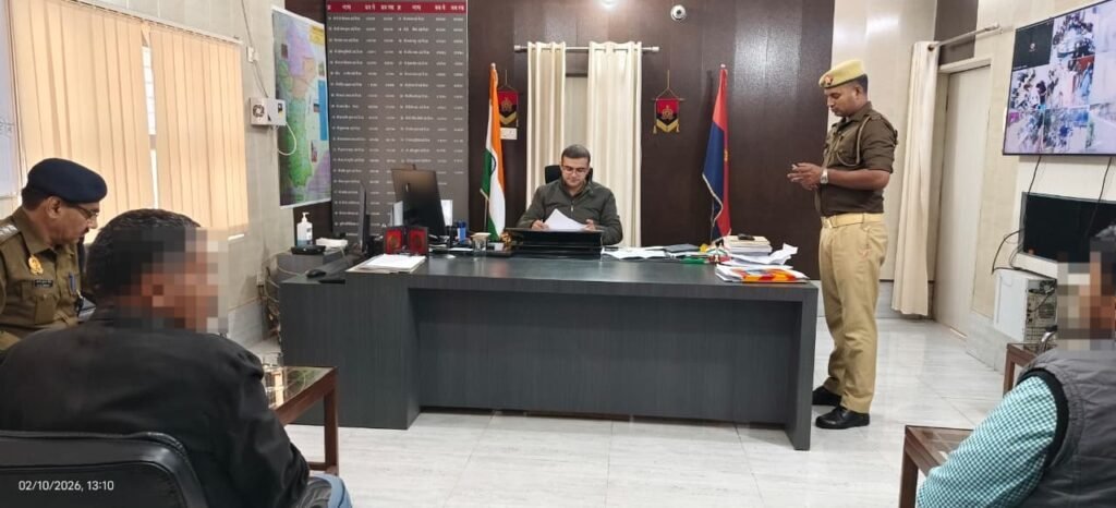 चन्दौली- जनता की समस्याओं को प्राथमिकता के आधार पर निस्तारण कराये जाने के क्रम में आज दिनांक 10.02.2026 को पुलिस अधीक्षक चन्दौली आदित्य लांग्हे ने पुलिस कार्यालय में जनसुनवाई किया। जिसमें अपनी समस्याओं को लेकर पहुंचे फरियादियों के आवेदन लेकर उन्हें न्यायोचित/गुणवत्तापूर्ण निस्तारण करने का आश्वासन दिया।