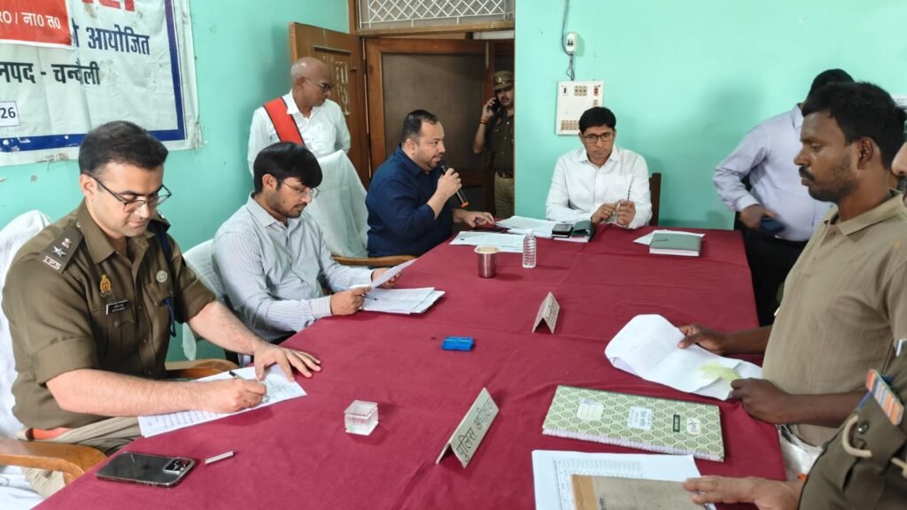 जिलाधिकारी चन्द्र मोहन गर्ग व पुलिस अधीक्षक आदित्य लांग्हे की अध्यक्षता में पीडीडीयू नगर तहसील सभागार में संपूर्ण समाधान दिवस पर आये हुए फरियादियों की समस्याओं को सुना गया और संबंधित अधिकारियों को आवश्यक दिशा-निर्देश दिए।