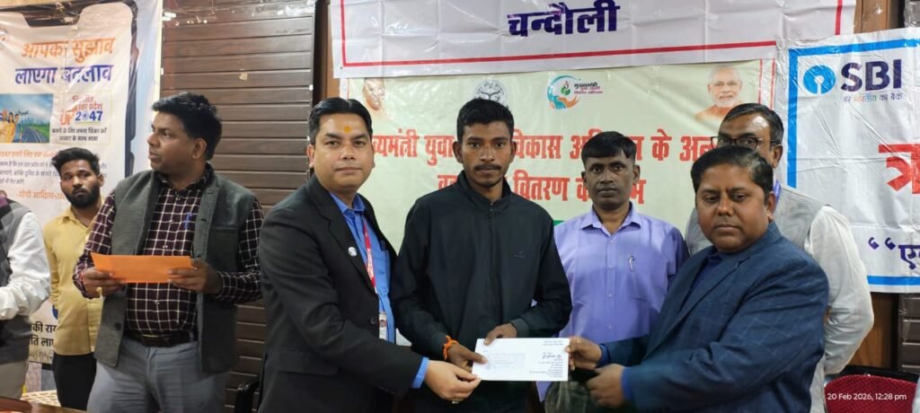 दिनांक 01-02-2026 को मुख्यमंत्री की अध्यक्षता में सम्पन्न एसएलबीसी की विशेष बैठक के अंतर्गत प्राप्त निर्देशानुसार आज दिनांक 20 फरवरी 2026 को जनपद चंदौली में वृहत ऋण शिविर का आयोजन उपायुक्त उद्योग उदय प्रकाश पासवान की अध्यक्षता में नियामताबाद ब्लॉक के सभागार में आयोजित किया गया, जिसमें विभिन्न सरकारी प्रायोजित विभिन्न योजनाओं के बारे में जनमानस को विस्तार से बताया गया । शिविर में लोगों को ऑनलाइन आवेदन करने की सुविधा दी गई ताकि उन्हें किसी प्रकार की असुविधा का सामना न करना पड़े । शिविर का मुख्य केंद्र बिंदु मुख्यमंत्री युवा उद्यमी योजना रहा । इसके अंतर्गत आज लगभग 40 आवेदनकर्ताओं को स्वीकृति पत्र विभिन्न बैंकों से आए शाखा प्रबंधकों द्वारा प्रदान किया गया । इस अवसर पर विभिन्न बैंकों द्वारा आज 60 ऋण सीएम युवा उद्यमी योजना अंतर्गत स्वीकृत किए गए।इस अवसर पर अग्रणी जिला प्रबंधक सुनील कुमार भगत , जिला विकास अधिकारी नाबार्ड विजेंद्र कुमार एवं जिला उद्योग केंद्र के अन्य अधिकारी मौजूद थे ।