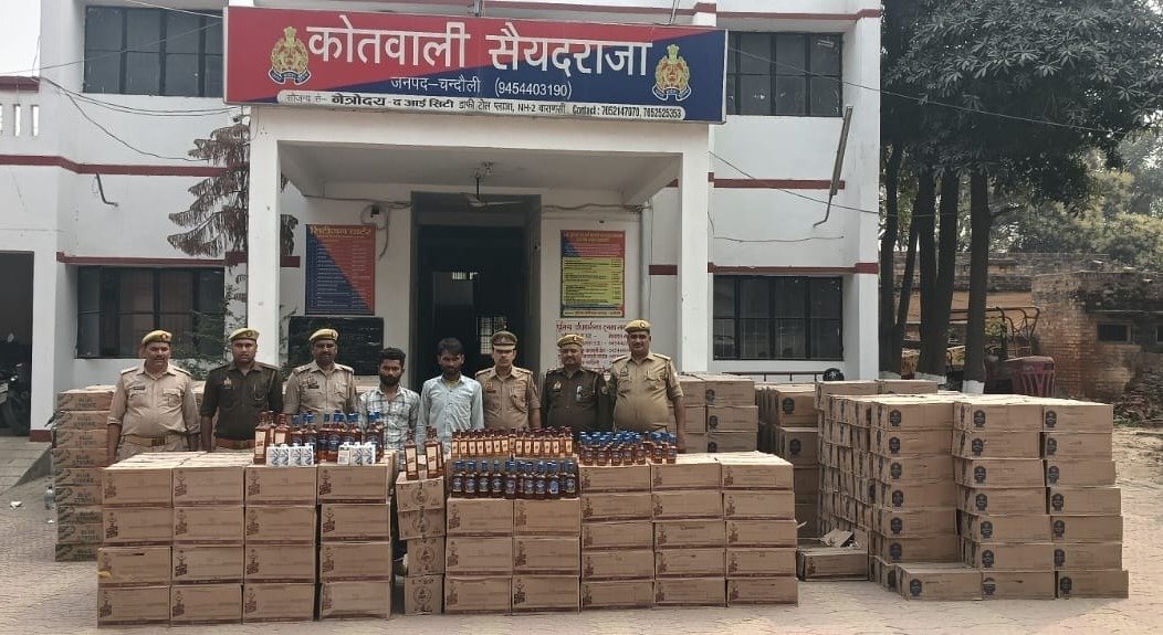 दिनांक 09.03.2026 को थाना सैयदराजा पुलिस टीम व प्रभारी निरीक्षक रामजनम यादव व सर्विलान्स टीम द्वारा मुखबिर से प्राप्त सूचना के आधार पर NH-19 हाइवे पर स्थित ग्राम जेठमलपुर काले पीर बाबा मजार के पास से चेकिंग की जा रही थी चेकिंग के दौरान लगभग 25-30 मिनट के बाद एक कन्टेनर ट्रक नं0 RJ14JQ3205 चन्दौली की तरफ से आता दिखाई दिया चेकिंग कर रही पुलिस टीम द्वारा ट्रक को रोक लिया गया ट्रक की तलाशी के दौरान ट्रक में आगे की तरफ कागज से बनी हुयी गुल्ली (जिसमें धागा लपेटा जाता है) रखी गयी थी अंदर चेक किया गया तो ट्रक में से कुल 849 पेटी अवैध अंग्रेजी शराब (कुल मात्रा 7473.36 लीटर) बरामद किया गया जिस पर “For Sale in Punjab Only” अंकित था। साथ ही ट्रक के चालक व परिचालक को गिरफ्तार किया गया ।