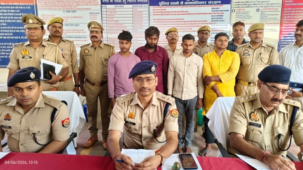 चन्दौली- पुलिस अधीक्षक चन्दौली, श्री आकाश पटेल द्वारा अपराध व अपराधियों के विरूद्ध प्रभावी कार्यवाही हेतु दिये गये निर्देशों के अनुपालन के क्रम में अपर पुलिस अधीक्षक सदर, अनन्त चन्द्रशेखर एवं क्षेत्राधिकारी पीडीडीयू नगर,अरुण कुमार सिंह के कुशल पर्यवेक्षण में प्रभारी निरीक्षक मुगलसराय राजेश कुमार मिश्रा व प्रभारी निरीक्षक स्वाट/सर्विलांस के कुशल नेतृत्व में दिनांक-05.04.2026 को थाना मुगलसराय व स्वाट/सर्विलांस पुलिस टीम द्वारा प्राप्त इलेक्ट्रॉनिक, मैनुअल एवं सर्विलांस सेल से संकलित साक्ष्यों के आधार पर इंडियन इंस्टीट्यूट कॉलोनी के नाचघर मैदान के पास से लूट की घटना कारित करने वाले 04 अभियुक्तों को गिरफ्तार किया गया। गिरफ्तार अभियुक्तों के कब्जे से लूट के 23,000 रुपये नकद, 02 मोबाइल फोन, 01 पीली धातु का लॉकेट, घटना में प्रयुक्त 01 मोटरसाइकिल CD डीलक्स नं0 UP63AU8764 तथा 01 अवैध तलवार बरामद किया गया। गिरफ्तारी व बरामदगी के आधार पर मुकदमा उपरोक्त में धारा 317(2) BNS व 4/25 आयुध अधि0 बढोत्तरी कर अग्रिम विधिक कार्यवाही प्रचलित है।