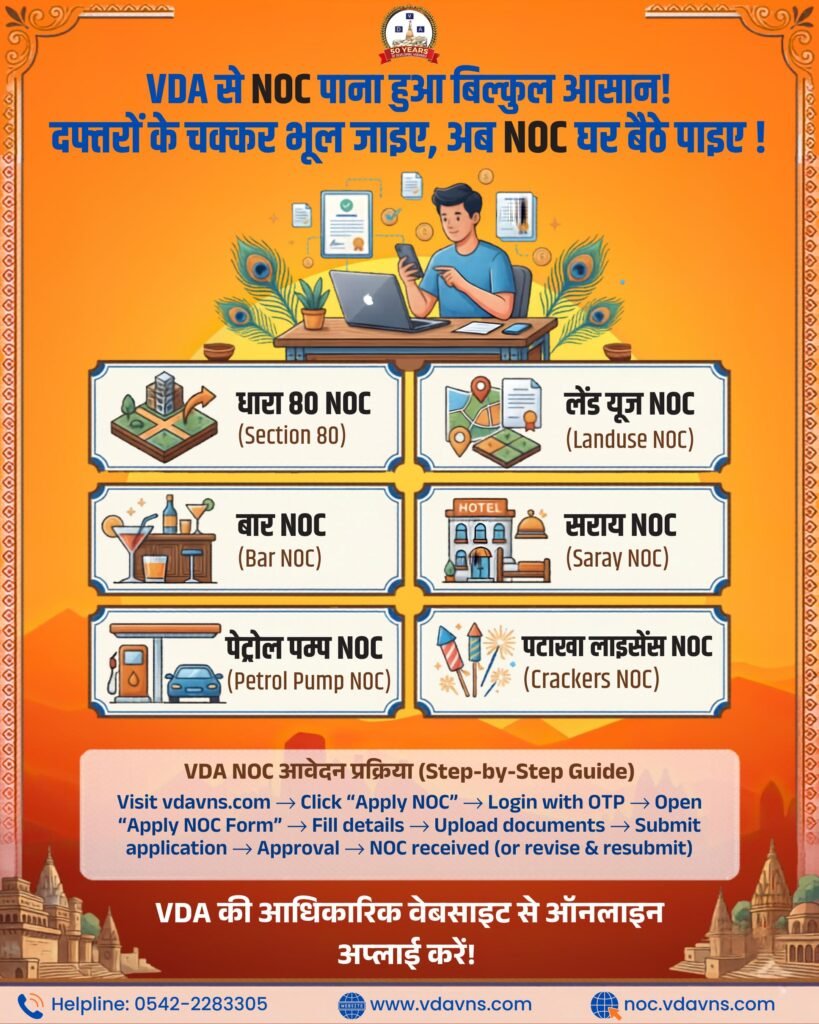 वाराणसी विकास प्राधिकरण, वाराणसी VDA की ऑनलाइन NOC सेवा का शुभारम्भ – अब घर बैठे मिलेगी NOC सुविधा।
