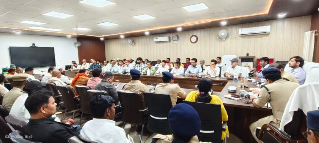 जिलाधिकारी द्वारा सभी उपस्थित सदस्यों का स्वागत किया साथ ही हर वर्ष की तरह आपसी भाईचारा के साथ नवरात्रि, आगामी रामनवमी एवं ईद-उल-फितर पर्वों मनाने की अपील की। बैठक में जनपद के विभिन्न धर्मों के गणमान्य नागरिकों, धर्मगुरुओं, व्यापारी संगठनों के प्रतिनिधियों एवं संबंधित विभागीय अधिकारियों ने प्रतिभाग किया। जिलाधिकारी महोदय द्वारा सभी से आपसी सौहार्द एवं भाईचारा बनाए रखते हुए पर्वों को शांति एवं सद्भाव के साथ मनाने की अपील की गयी। उन्होंने कहा कि सभी त्यौहार हमारी साझा सांस्कृतिक विरासत के प्रतीक हैं, जिन्हें मिल-जुलकर मनाना हम सभी की जिम्मेदारी है। त्यौहार पर किसी प्रकार की नई परंपरा न की जाए शुरू। बैठक में साफ-सफाई, पेयजल, विद्युत आपूर्ति, यातायात व्यवस्था एवं अन्य आवश्यक व्यवस्थाओं को दुरुस्त रखने के निर्देश संबंधित अधिकारियों को दिए गए।