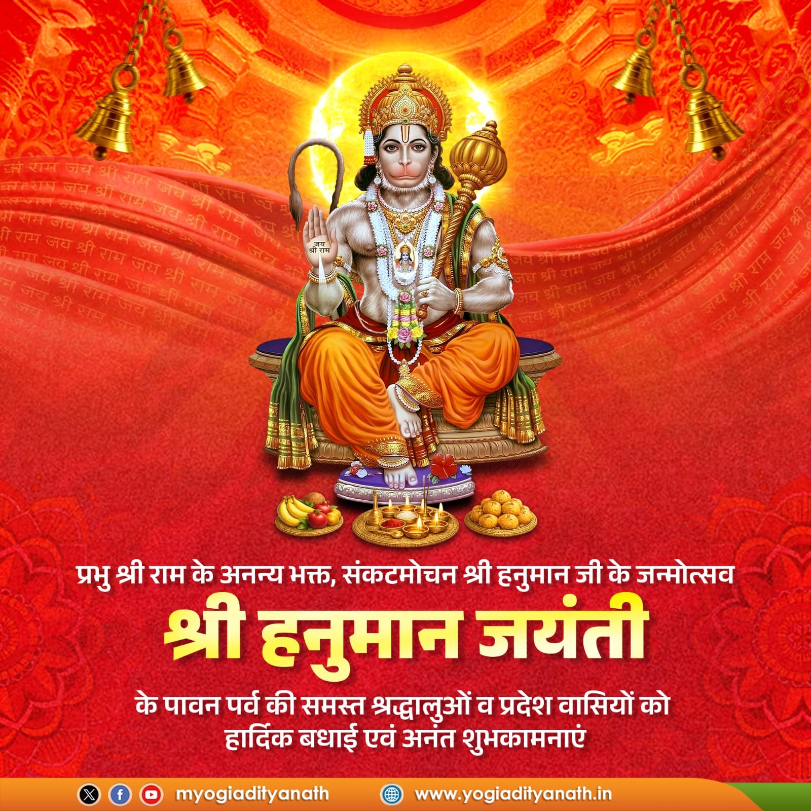 प्रभु श्री राम के अनन्य भक्त, संकटमोचन श्री हनुमान जी के जन्मोत्सव ‘श्री हनुमान जयंती’ के पावन पर्व की समस्त श्रद्धालुओं एवं प्रदेश वासियों को हार्दिक बधाई एवं अनंत शुभकामनाएं।