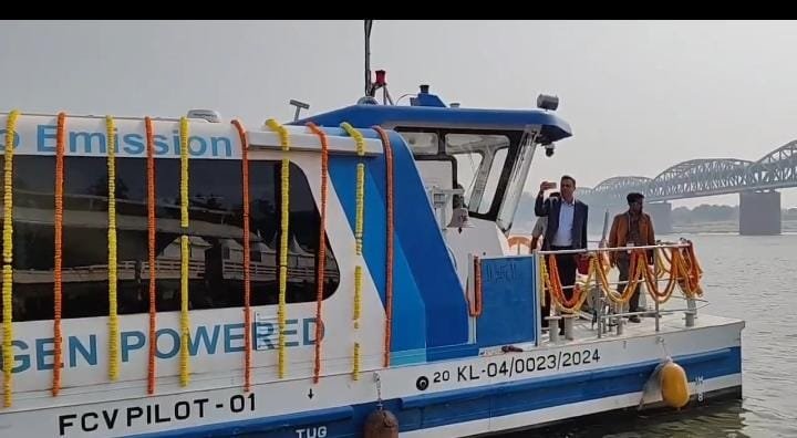 वाराणसी में देश की पहली हाइड्रोजन जलयान का संचालन नमो घाट गंगा में शुरू हुआ।