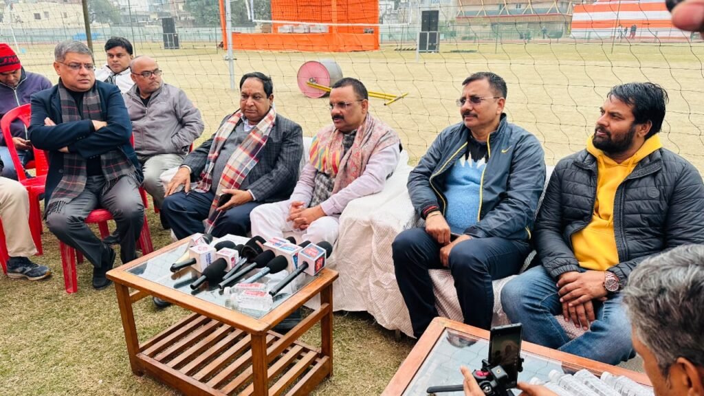 डा. संपूर्णानंद स्टेडियम में शनिवार कोआयोजित पत्रकारवार्ता में यह जानकारी आयोजन समिति के अध्यक्ष एवं महापौर अशोक कुमार तिवारी ने दी । उन्होंने बताया कि काशी में पहली बार आयोजित होने वाले नेशनल वॉलीबॉल चैंपियनशिप माननीय प्रधानमंत्री नरेन्द्र मोदी जी के ‘खेलो इंडिया’ विजन को समर्पित है। प्रधानमंत्री व मुख्यमंत्री का उद्देश्य वॉलीबॉल को केवल स्टेडियमों तक सीमित न रखकर उसे काशी के गांव-गांव और गली-गली तक पहुंचाना है। बताया कि काशी के इतिहास में पहली बार अंतरराष्ट्रीय वॉलीबॉल महासंघ के ऑब्जर्वर स्विट्जरलैंड से निगरानी में होगा । मैचों की गुणवत्ता के लिए उत्तराखंड और राजस्थान से विशेष टेराफ्लेक्स कोर्ट मंगाए गए हैं, जिन्हें स्टेडियम के इंडोर हॉल और फुटबॉल मैदान में तैयार किया गया है। कहा चैंपियनशिप में हिस्सा लेने के लिए देश के 31 राज्यों की टीमों वाराणसी पहुंच चुके हैं, जिनमें महाराष्ट्र, राजस्थान, हरियाणा, बिहार, झारखंड, बंगाल, त्रिपुरा, पंजाब सहित अन्य राज्यों की टीमें शामिल हैं। प्रतियोगिता में देशभर से कुल 1022 खिलाड़ी (73 टीमें) हिस्सा लेंगे। खिलाड़ियों के ठहरने के लिए होटलों के साथ-साथ स्टेडियम के नवनिर्मित छात्रावास में भी व्यवस्था की गई है। बताया कि दर्शकों के लिए स्टेडियम में प्रवेश पूरी तरह निशुल्क रहेगा। खिलाड़ियों के लिए ‘हेल्प डेस्क’ भी सक्रिय कर दिया गया है ताकि उन्हें किसी भी प्रकार की असुविधा न हो।